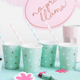 De couleur vert d'eau vous pourrez les associer à différentes couleurs notamment le rose ou le blanc. De plus, la collection Cactus est disponible sur Mes Fêtes.com, associez ces gobelets cactus avec les serviettes et les assiettes assorties.