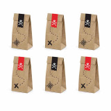 Pas chère, ce lot de x 6 pochettes surprise pirate de la collection « Voyages avec les Pirates » est idéal pour offrir de délicieuses gourmandises, comme des bonbons de toutes les couleurs aux copains et aux copines de votre bout de chou qu’ils pourront ramener chez eux une fois le goûter terminé.