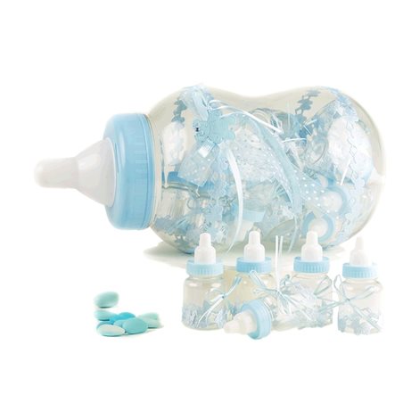 Magnifique présentoir en forme de biberon avec à l’intérieur 30 biberons bleu à garnir. Idéal pour naissance, baptême et baby shower