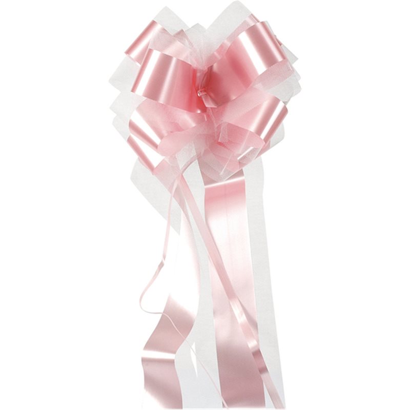 Magnifique nœud automatique pour une décoration voiture mariage réussi. Ce noeud en tulle et polypropylène peut être utilisé comme déco voiture mariage ou comme décoration de salle de mariage. Vendu à l'unité Dimension: 100 mm