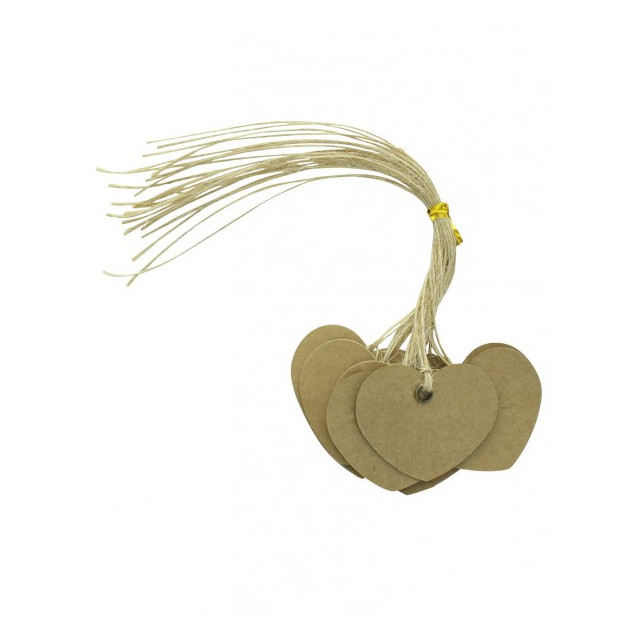 12 x Etiquette Dragées Coeur Kraft + lien