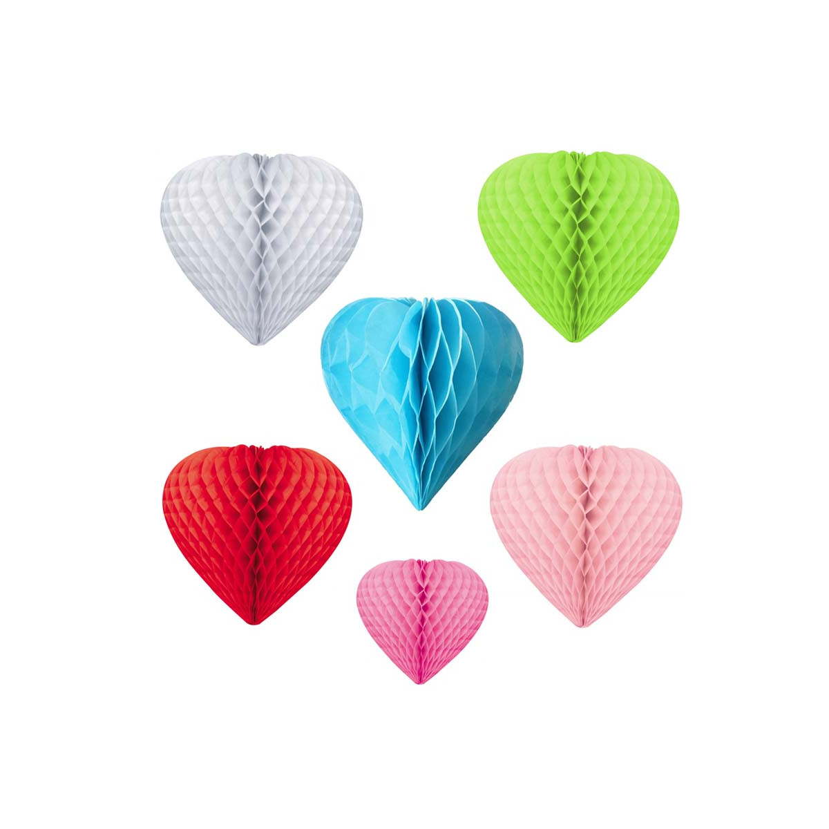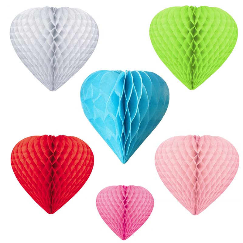 Boule alvéolée papier en forme de coeur. Choisissez votre Couleur entre Bleu, Rouge, Vert, Blanc, Rose, Fushia.