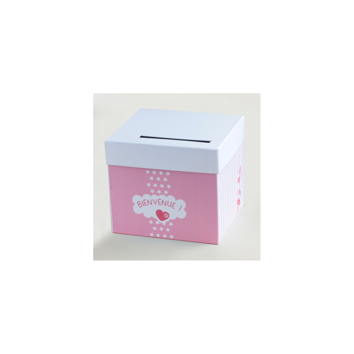 Urne Baptême Bienvenue Rose en carton livrée déjà montée.