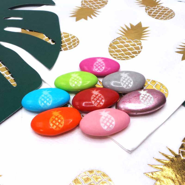 Vous êtes fan des ananas, vous aimez tout ce qui l'entoure? Vous êtes au bon endroit! Profitez de ces dragées personnalisées qui émerveilleront vos invités le jour J! Vous souhaitez un vent de fraîcheur? Quoi de mieux qu'un ananas gravé sur une jolie dragée de la couleur de votre choix? Ces dragées seront la pour égayer votre anniversaire, baptême, fête, communion ou peut-être même votre mariage.