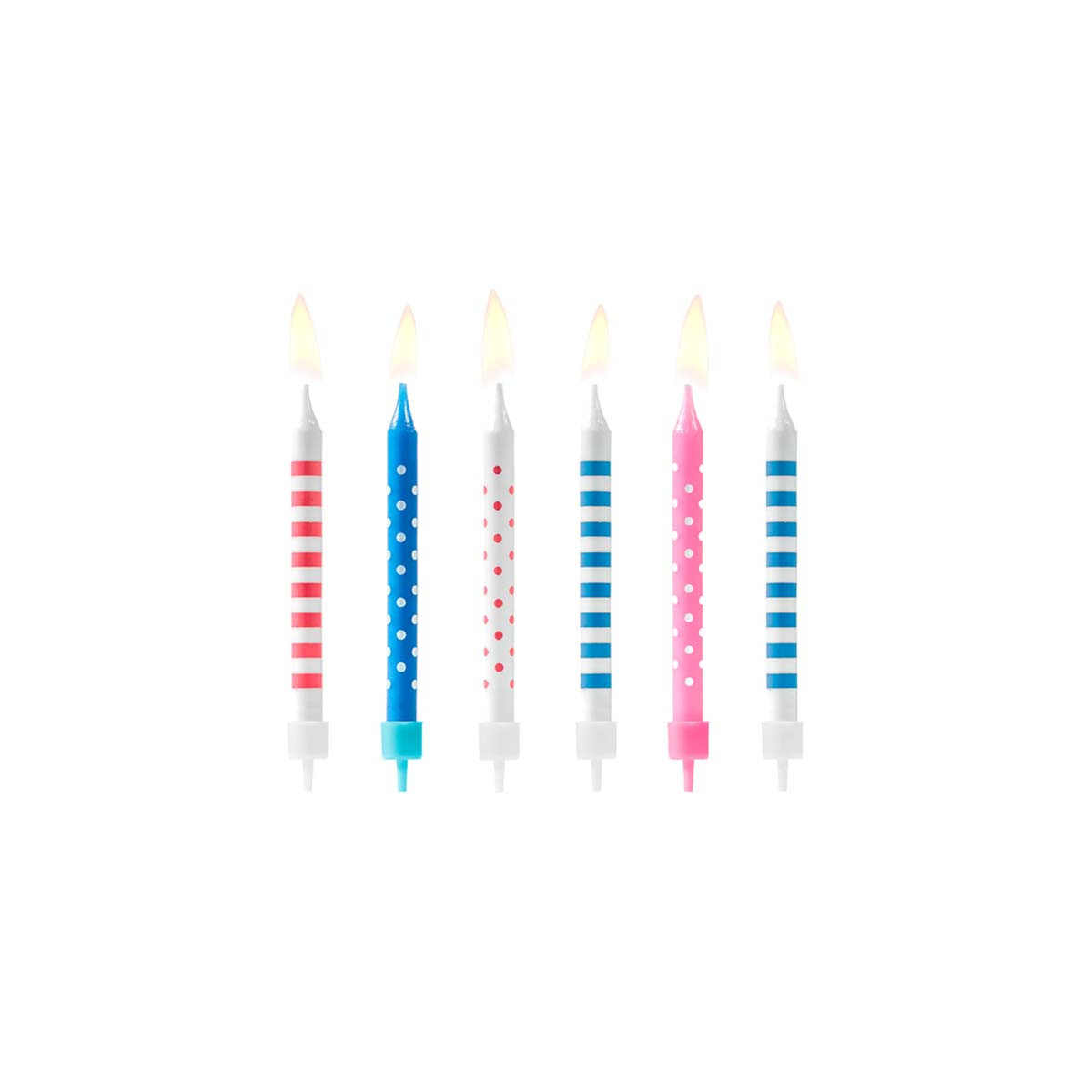 Lot de x6 Bougies anniversaire Roses et Bleues avec socles assortis.
