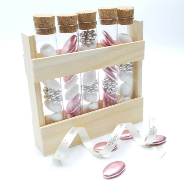 Vous souhaitez offrir des dragées pour le jour de votre mariage ? Nous vous proposons de magnifiques éprouvettes en verre dans lesquelles vous pourrez disposer vos dragées. Vous pourrez aussi compléter votre décoration avec ce support à éprouvette qui vous permettra de les disposer au centre de vos tables.