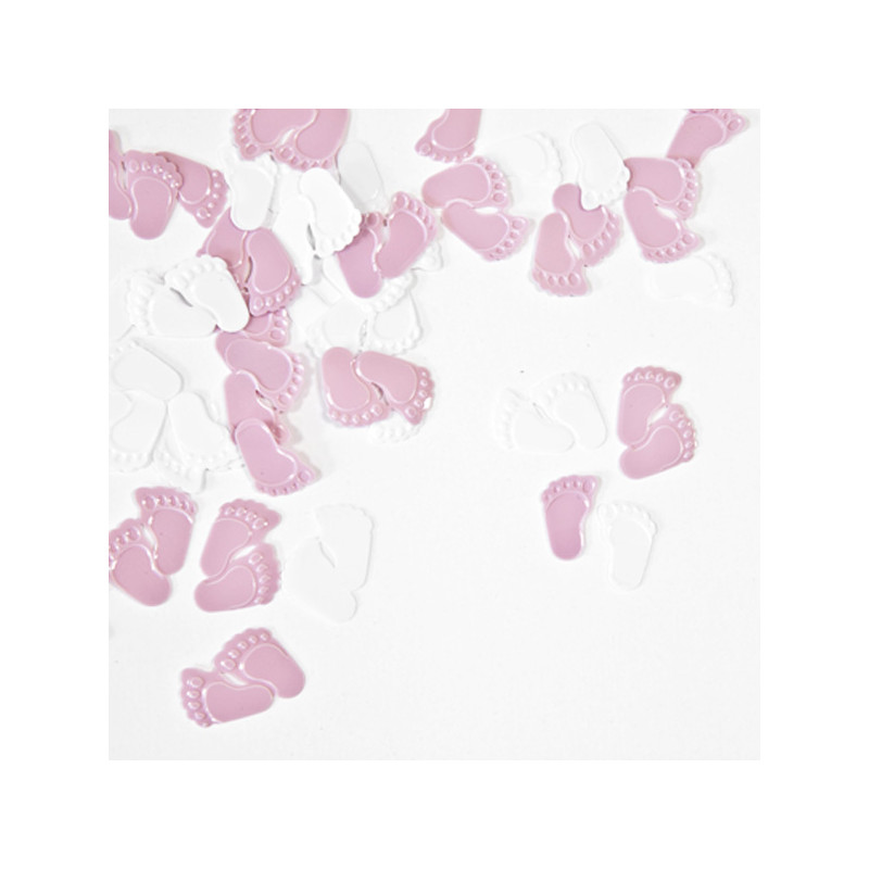 Ce lot de confetti petits pieds rose et blanc viendront décorer vos tables de babyshower, en les disposant au centre de celles-ci. Vous pouvez aussi les utiliser pour la décoration de vos tables de baptême ou d'anniversaire.