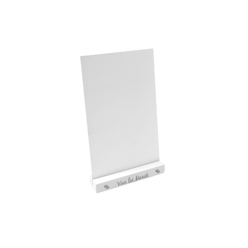 Pas cher, ce menu repose sur un socle en bois. Vous pouvez disposer un menu au centre de chacune de vos tables de mariage. De couleur blanc et argent, il se mariera parfaitement avec le reste de votre décoration de table.