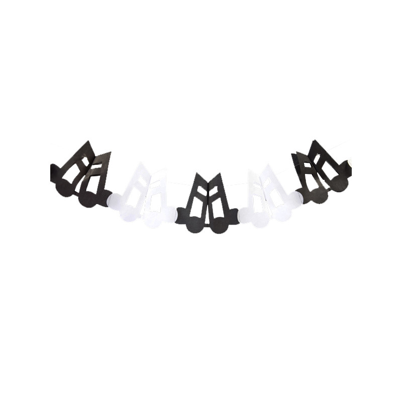 Décorez votre salle de mariage ou d'anniversaire sur le thème musique avec cette guirlande en papier note de musique de couleur blanche et noire.