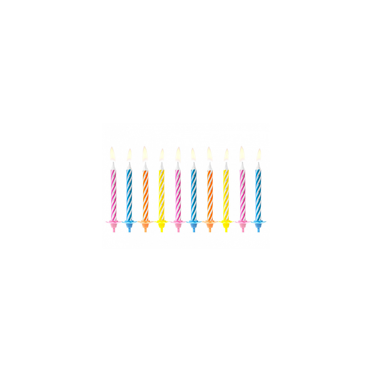 superbes bougies proposées en mix de couleurs festives: rose, bleu, orange, jaune