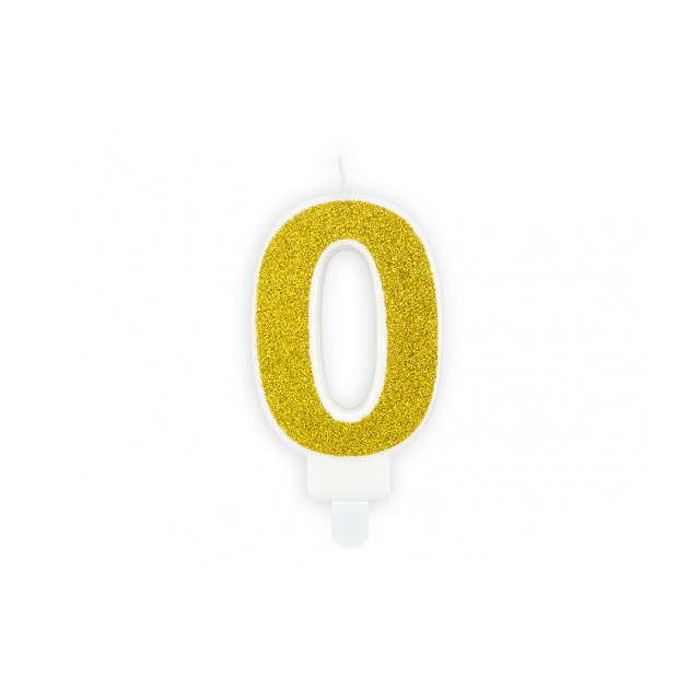 De couleur Or pailletée et mesurant 7 cm, cette bougie chiffre « 0 » peut s’associer avec d’autres bougies chiffres pas chers de la même collection.