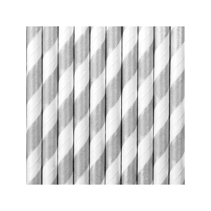 x10 Pailles blanches et argent mat