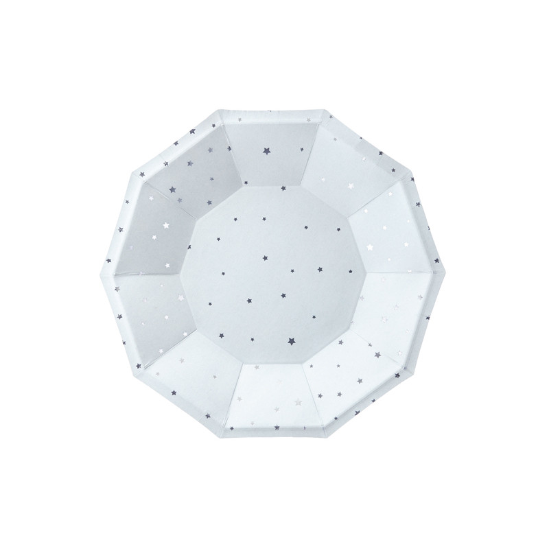 Voici des assiettes hexagonales en carton bleues ciel  à la mode grâce aux étoiles argentés, parfaits pour décorer votre table de fête et compléter votre décoration. Que ce soit un anniversaire, un mariage, ces assiettes seront un atout pour une décoration de table.