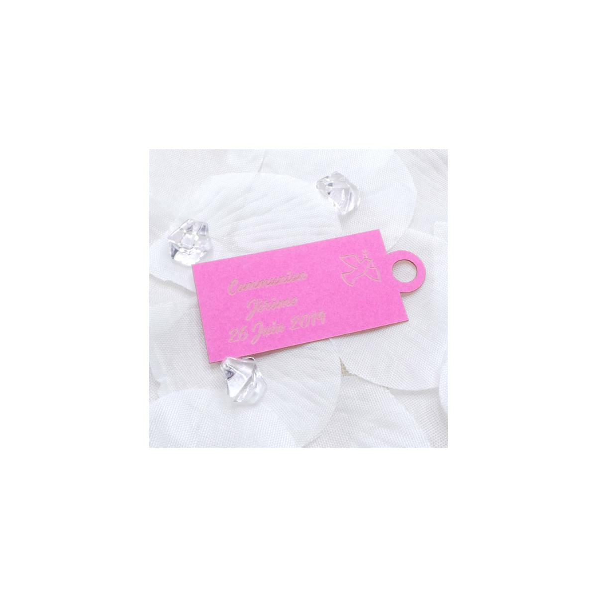 Cette étiquette colombe viendra embellir votre contenant à dragées, vous pouvez l'accrocher à l'aide d'un ruban en satin par exemple.